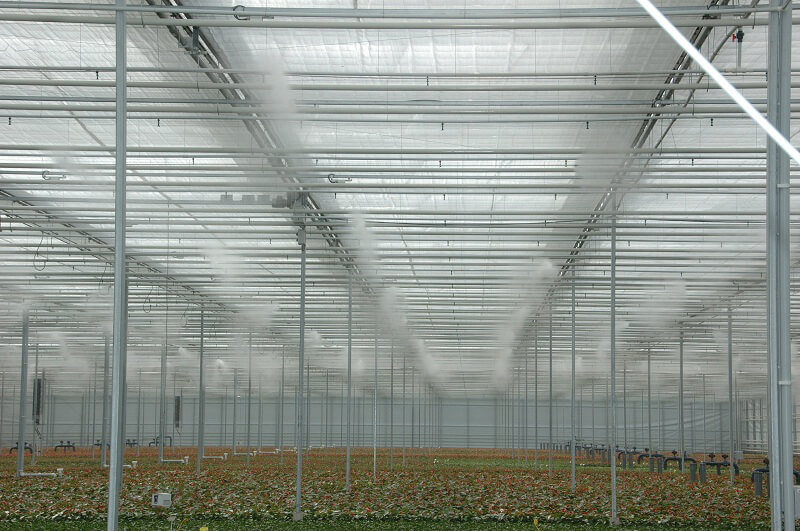 Temperature and relative humidity are undeniably very important factors contributing to the success of your cultivation. Application of a humidification installation creates a better climate for the plants. Agrotech Didam BV delivers and installs low pressure and high pressure humidification systems. Important in determining the right installation are the factors like propagation, water quality, capacity, dimensions of the greenhouse.