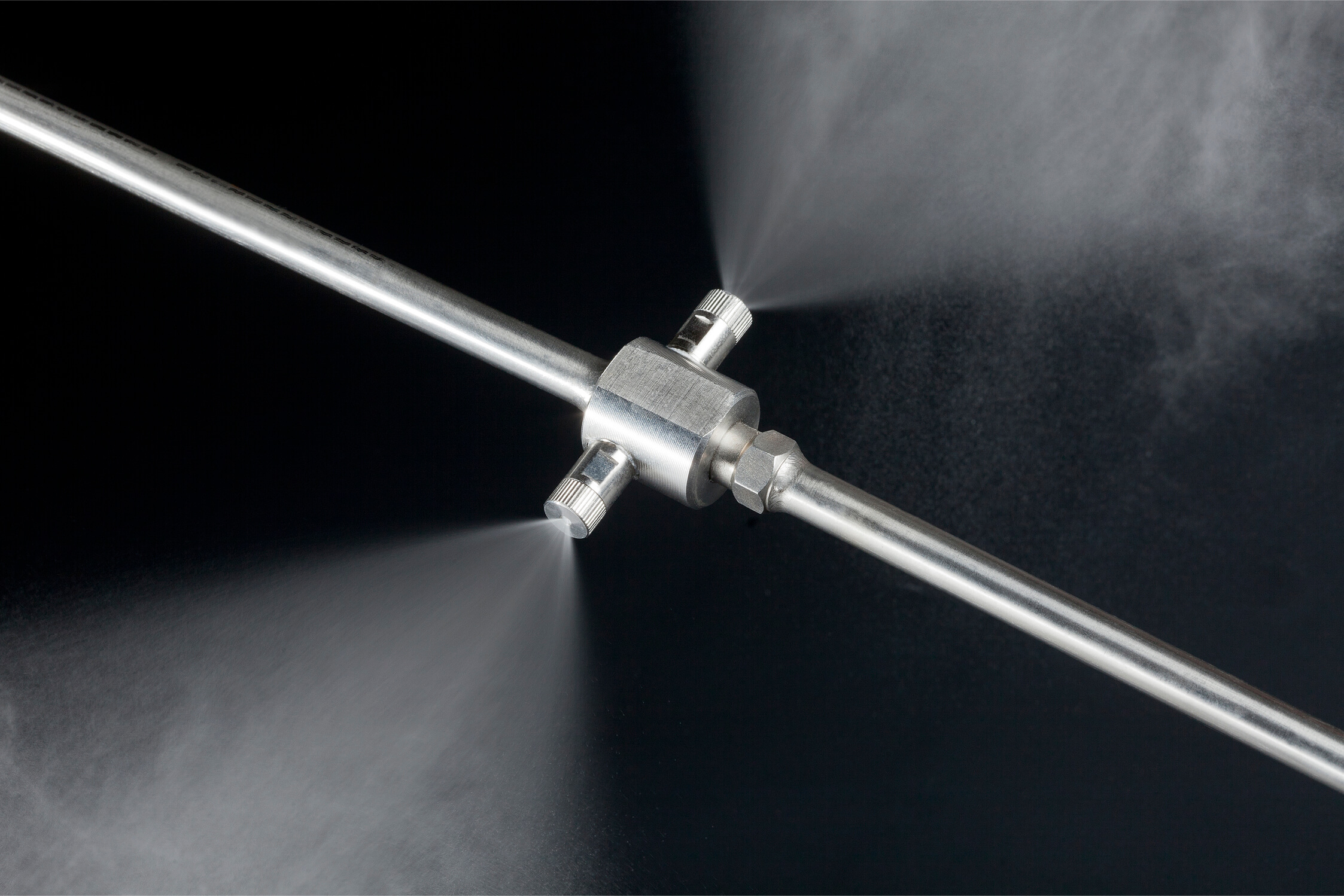 The low pressure humidification system is a low budget solution for your humidity problems. Installed in the top of the greenhouse, PE lines on which mist nozzles are installed, produce mist with an average droplet size of ± 100 microns. The system operates with a pressure of 4/5 bar at the nozzle. Short pulses in combination with the fine droplet, avoids in most cases wetting of the crop.