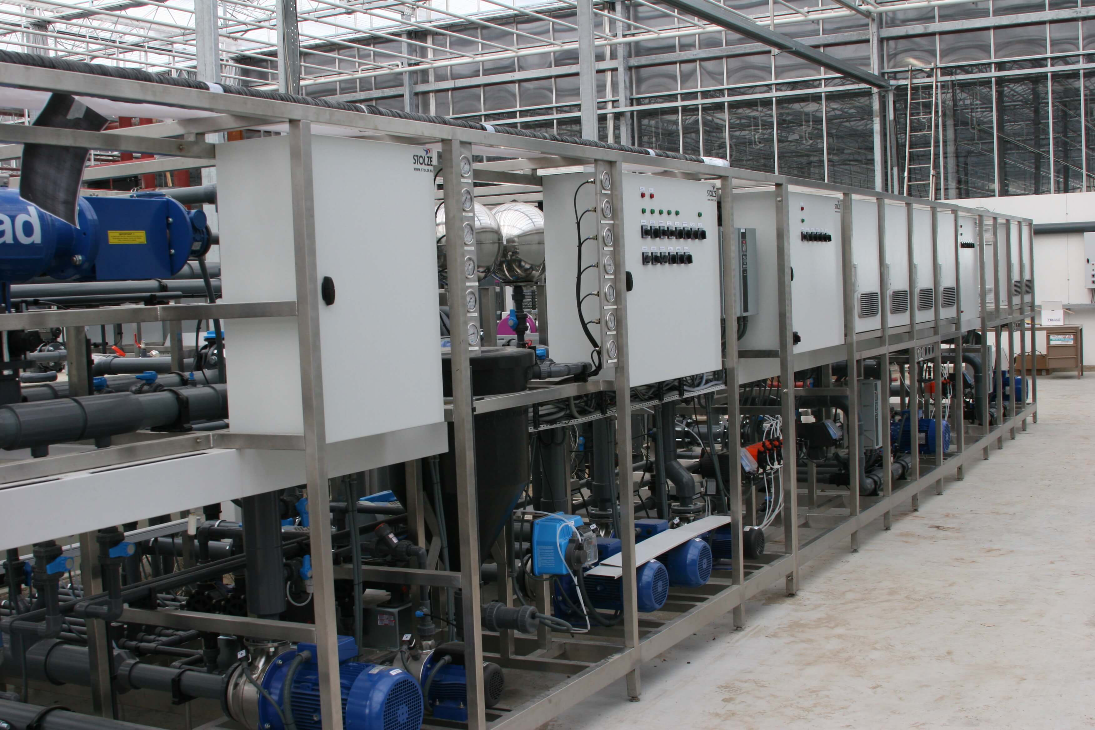 Because of the high salinity without treatment, well water can often not be used as irrigation water. Reverse osmosis (RO) is a filtration method that removes types of large molecules and ions from solutions by applying pressure to the solution when it is on one side of a selective membrane. The result is that the brine is retained on the pressurized side of the membrane and the pure solvent is allowed to pass to the other side. High bicarbonate level in irrigation water can be treated by using a Neutralizer unit. The Neutralizer adds acid to the fresh water and mixes it thoroughly in a specially designed mixing chamber. The Neutralizer can be used when fresh water is pumped into a fresh water storage silo, or when fresh water is circulated through the Neutralizer.